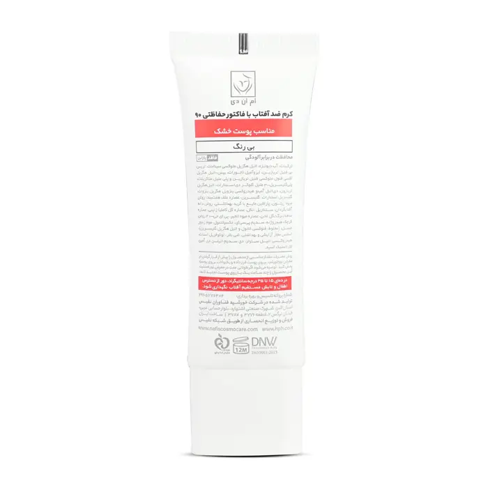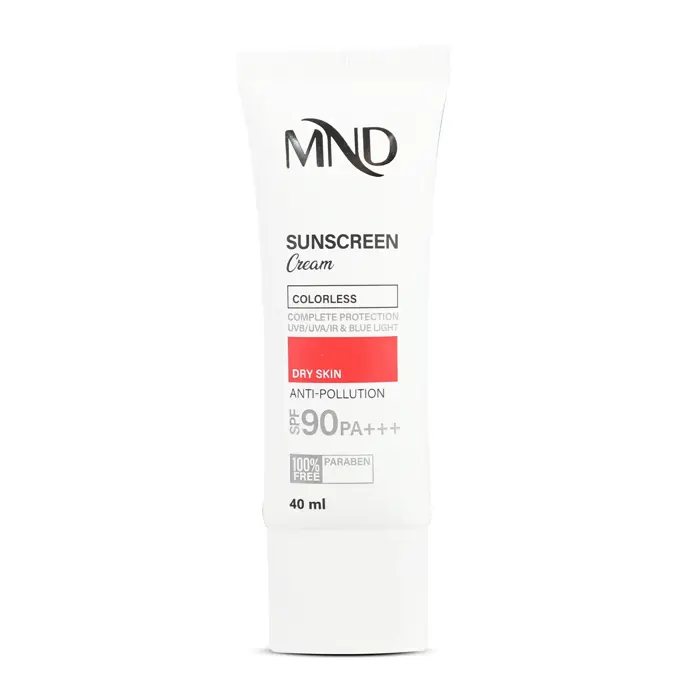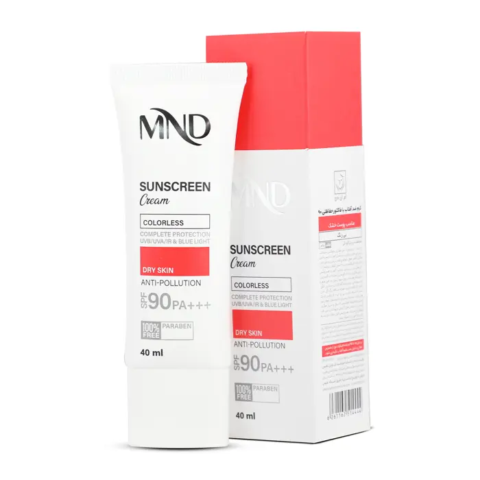 کرم ضد آفتاب با فاکتور حفاظتی 90 (SPF 90) بی رنگ ام ان دی مناسب پوست خشک