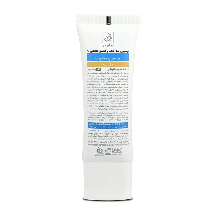لوسیون ضد آفتاب با فاکتور حفاظتی 90 (SPF 90) بژ تیره ام ان دی مناسب پوست چرب