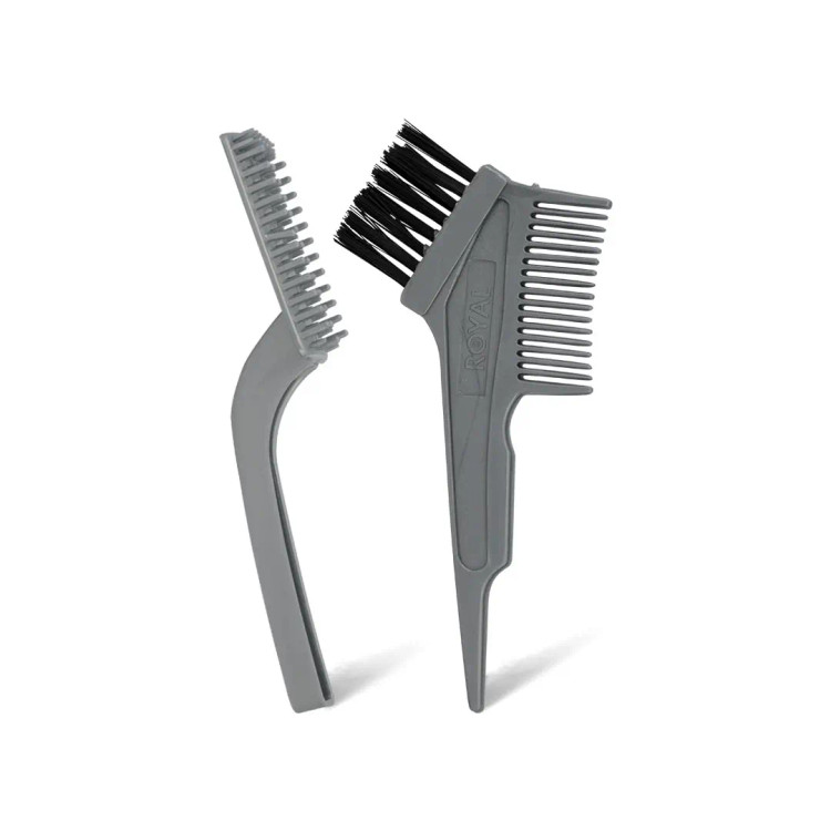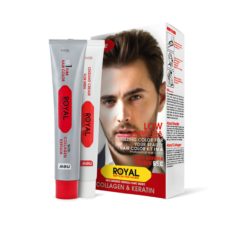 شماره پروانه : 56/14822 کیت رنگ موی مردانه رویال با بکارگیری از پیشرفتهترین فرمولاسیون روز دنیا و روش مصرفی هوشمندانه در طراحی این کیت، علاوه بر استفاده بسیار آسان، بهترین عملکرد و رنگپذیری را برای موهای شما به ارمغان میآورد. کیتهای رنگ موی مردانه رویال در 5 رنگ، در طیفهای قهوه ای و مشکی مناسب برای انواع سلیقههای تولید و عرضه شده است. در کیت رنگ موی 100 میلیلیتر مردانه رویال دو عدد تیوپ وجود دارد که تیوپ خاکستری رنگ، 50 میلیلیتر رنگ مو و تیوپ سفید رنگ، 50 میلیلیتر اکسیدان کِرمی است. روش مصرف ابتدا مقداری از رنگ مو را به همراه اکسیدان کرمی روی برس مخصوص داخل کیت زده، سپس به آرامی و یکنواخت روی نواحی مورد نظر کشیده تا تمام تارهای مو آغشته به مواد روی برس شود.توجه داشته باشید که برای پخش شدن بهتر رنگ مو و اکسیدان رو تمامی نواحی، میتوانید از فرچه و شانه داخل کیت نیز استفاده نمایید، سپس بعد از 10 الی 15 دقیقه موهای خود را با آب ولرم آبکشی کرده تا تمام مواد شسته شود. درباره محصول ویتامین سی، B5 ،کراتین و کلاژن استفاده شده در فرمولاسیون کیت رنگ موی مردانه رویال اعث تقویت موهای شما میشود. همچنین وجود روغن آرگان، روغن ماکادِمیا و روغن نارگیل همراه با پایین بودن میزان آمونیاک در رنگ موی این کیت، از خشکی و آسیبِ مو حین و پس از استفاده، جلوگیری کرده و نرمی و شادابی به آنها میبخشد در این کیت رنگ موی مردانه دو تیوپ وجود دارند که تیوپ خاکستری رنگ، 50 میلیلیتر رنگ مو و تیوپ سفید رنگ، 50 میلیلیتر اکسیدان کِرمی است.