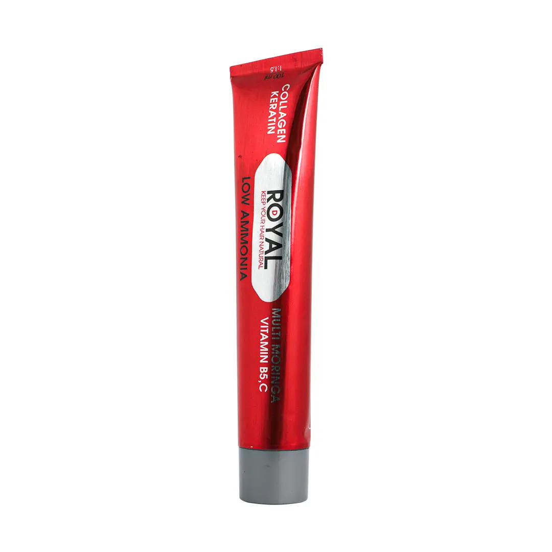 روش مصرف در نظر داشته باشید اگر موهای متوسطی دارید از نصف تیوپ رنگ استفاده کنید و در صورت بلند بودن موها از کل تیوپ استفاده نمایید. مقدار اکسیدان قرار گرفته شده در قوطی اکسیدان برای کل تیوپ در نظر گرفته شده است . اگر از نصف تیوپ رنگ استفاده میکنید نصف اکسیدان و اگر از کل تیوپ از تمام اکسیدان استفاده نمایید. رنگ و اکسیدان را در ظرف غیر فلزی با هم ترکیب کنید و با فرچه موجود در جعبه شروع به رنگ کردن موها از ریشه تا نوک بنمایید. سپس موها را بالای سر جمع کرده و با کلاه مخصوص که در جعبه قرار دارد روی موها را بپوشانید، سپس بعد از 25 دقیقه موها را از کلاه خارج نموده و با آب فراوان آبکشی نمایید. شماره پروانه : 56/14822 رنگ موی رویال؛ استاندارد جهانی، نتیجه حرفهای رنگ موی رویال با بهرهگیری از بهترین متریال روز دنیا تولید شده و از نظر کیفیت، قابل رقابت با برندهای مطرح بینالمللی است. بیش از ۷۰٪ مواد اولیه و ترکیبات این محصول ایتالیایی بوده و رنگدانهها، کراتین و کاندیشنر بهکاررفته در آن از برند معتبر لووناشتاین آمریکا تأمین شدهاند؛ ترکیبی که نتیجهاش رنگ مویی ماندگار، شفاف و حرفهای است. یکی از مهمترین فاکتورهای یک رنگ موی ایدهآل، سرعت و یکنواختی رنگپذیری آن است. رنگ موی رویال تنها در ۲۵ دقیقه بهطور کامل جذب شده و تمام تارهای مو را یکدست و بدون لکه پوشش میدهد. فرمولاسیون غنی این رنگ مو، حاوی نرمکنندههای تخصصی، کلاژن و کراتین است؛ به همین دلیل بعد از استفاده و شستشو، موها نهتنها خشک و شکننده نمیشوند، بلکه نرم، خوشحالت و تقویتشده باقی میمانند. برخلاف بسیاری از رنگ موهای موجود در بازار که پس از چند بار شستشو دچار تغییر تناژ به قرمزی یا سبزی میشوند، رنگ موی رویال ثبات رنگ بالایی دارد و درخشندگی آن تا مدتها حفظ میشود؛ درخششی که نشانه یک رنگ موی باکیفیت واقعی است. میزان آمونیاک بسیار پایین در این محصول، آسیب به مو را به حداقل رسانده و امکان استفادهی مکرر حتی چند بار در هفته را بدون نگرانی فراهم میکند. همچنین استفاده از اسانسهای معطر باعث شده تجربه رنگ کردن مو با رویال، خوشایندتر و بدون بوی آزاردهنده باشد. اگر بهدنبال رنگی ماندگار، درخشان و سالم هستید، رنگ موی رویال انتخابی حرفهای و مطمئن است. این کیت رنگ موی 250 میلیلیتری رویال شامل یک رنگ موی تیوپی ۱۰۰ میلیلیتری و یک اکسیدان ۱۵۰ میلیلیتر است.