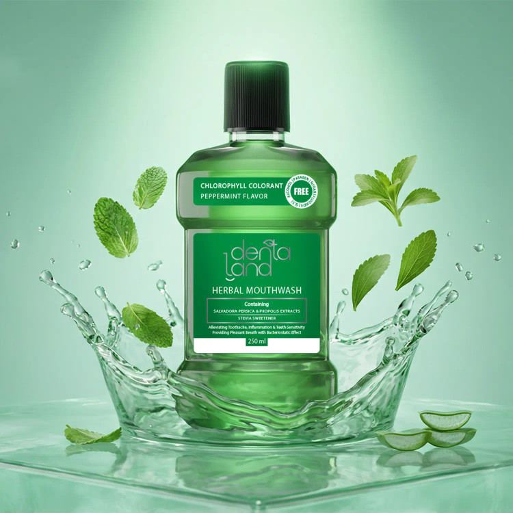 سلامت دهان و دندان نهتنها به مسواک زدن، بلکه به استفاده از دهانشویه مناسب نیز بستگی دارد. دهانشویه گیاهی غیرالکلی دنتالند با بهرهگیری از ترکیبی متنوع از عصارههای متنوع طبیعی و به ویژه رنگ طبیعی کلروفیل، به بهبود سلامت دهان و دندان، پیشگیری از التهاب لثهها، کاهش بوی بد دهان و مهار فعالیت باکتریهای مضر کمک میکند و تجربهای تازه و طبیعی از مراقبتهای دهانی را به ارمغان میآورد. این دهانشویه فاقد الکل، پارابن، شکر، فلوراید و عوامل کفکننده سنتزی بوده و برای استفاده روزانه تمامی اعضای خانواده مناسب است. روش مصرف پس از مســـواک زدن، مقدار ۱۵ تا ۲۰ میلی لیتر از دهانشـــویه به مـــدت ۳۰ ثانیه در دهان گردانده شده و پس از آن بیرون ریخته شود. این محصول نیاز به رقیق کردن ندارد.